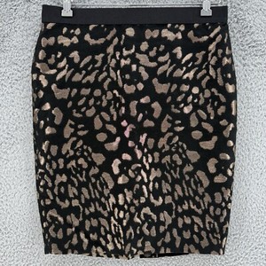 Ann Taylor Animal Print Pencil Skirt Womens 8P Lined Knee Length Pleated Zip