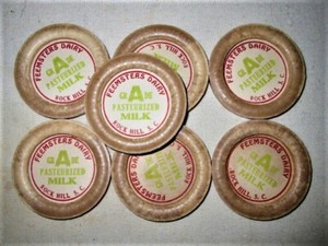 7 VINTAGE FEEMSTERS DAIRY GRADE A MILK ROCK HILL S.C. CARDBOARD TOP BOTTLE CAPs
