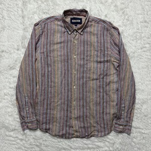 32 Bar Blues Shirt Mens L Multicolor Striped 100% Linen Long Sleeve Button Down