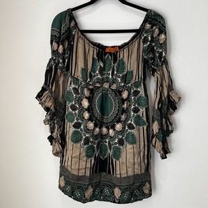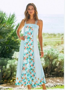 Great dress at a great price. I know the seller was concerned about some small splatter stains, but with the block print they are hard to notice! The item was better than described.