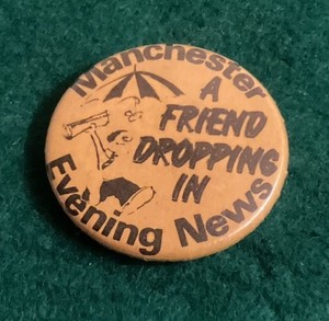 Vintage Manchester Evening News M.E.N. Badge A friend Dropping In Uk Freepost
