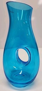 Vintage 12" Handblown Aqua Glass Wine/Water Decanter W/ Donut Hole POLAND Heavy
