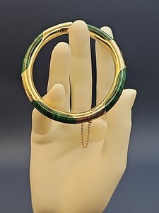 14k Yellow Gold And Malachite Etched Bangle Hinged Bracelet