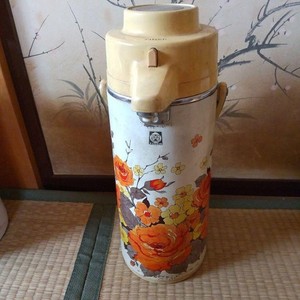 Tiger Flower Pattern Vacuum Bottle Pot 1.6L Orange & Gray Showa Retro Japan Rare