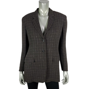 Lafayette 148 Blazer Size 10 Petite Pockets 100% Linen Jacket Brown Vintage