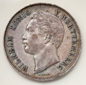 2 Gulden 1845 Württemberg Wilhelm I Silver Old German AKS#76