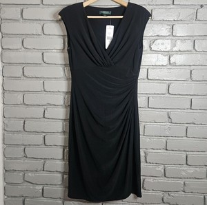 Lauren Ralph Lauren Essentials Faux Wrap Black Dress Size 8 Holiday Party LBD