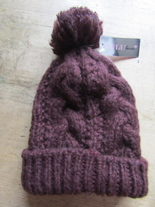 Lulu Loves Soft Dark Plum Chunky Knit Woolly Bobble Hat New Tagged