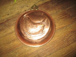 Vtg Copper Chicken Hen on Nest Round Baking Jello Mold Wall Hanging 7-34"