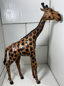 Vintage Mid Century Leather Wrapped Paper Mache Giraffe Hand Painted 15" Tall
