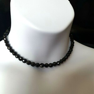 Black Shiny Beads Necklace Flower Clasp Short Elegant Black Spinel Imitation