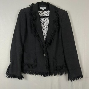 Serena Kay Blazer Jacket Women's 42 Black Cotton Fringe Trim Notch Lapel Career