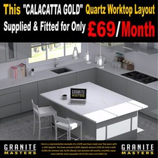 THIS CALACATTA GOLD QUARTZ WORKTOP LAYOUT SUPPLIED & FITTED FOR ONLY £50/MONTH