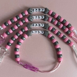 Personalised Reborn Dummy Clip: Silver Stars/Hearts Pink & Silver Beads