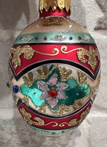 Dept 56 Jeweled Faberge Christmas Ornament, Red Silver