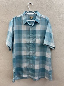 Haggar Clothing Mens Shirt Large Blue Plaid Button Up Short Sleeve Collared