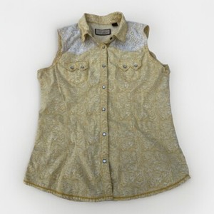 Legacy Falls Pearl Snap Yellow Womens SZ S Lace Accents Sleeveless Western Shirt