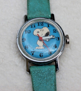 Vintage 1970s Snoopy Watch Blue Face Arm Hands Collectible