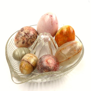 Vintage Italy Stone Eggs Set 7 Multiple Colors Collection Marble Agate Unsigned