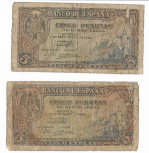 SPAIN: 5 PESETAS FRANCO (ALCAZAR). YEAR 1940. WITH SERIES. RC+. SCARCE AND IDEAL.