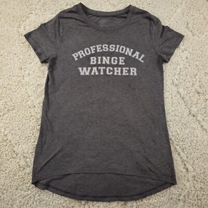 Professional Binge Watcher Womens T-Shirt Lightweight Size Large Gray Stretch