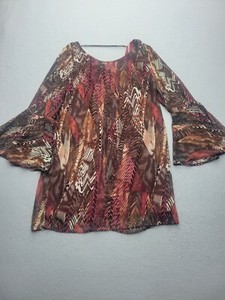 Pink Owl Women Dress Medium Brown/Red BOHO Long Sleeve Short Floral Polyester