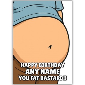 Personalised Funny Rude Birthday Card, Big Belly For Man Him Dad Son Fat Bastard