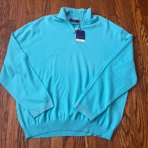Alan Flusser Mens XXL Aqua Cotton Cashmere Quarter Zip Pullover Sweater NWT