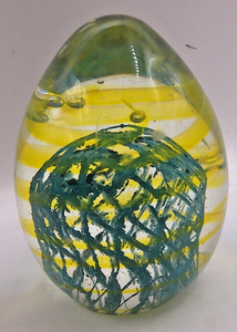 Vintage Art Glass Egg Paperweight, Blue/Green, 3 Inches Tall