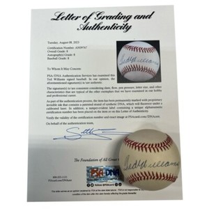 Ted Williams Autographed Baseball PSA Grade 8 - Player's Closet Project