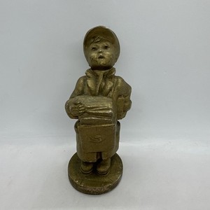 Vintage Paperboy Figurine Bronze Cast Metal Gold 6” Rare Find Newspaper