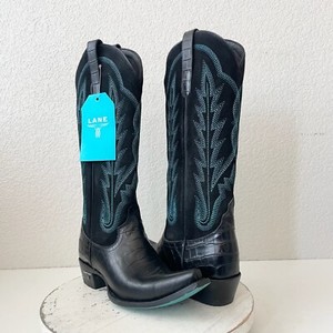 Lane SKYLIGHT Womens Cowboy Boots 8 Turquoise Black Western Cowgirl Mid Calf