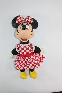 Disney Vintage Minnie Mouse Plush & Hard Plastic Doll Toy 14" Yellow Shoes 1980s