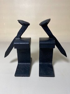 Vintage Iron Railroad Spike Matching Black Bookends Train 7.5" x 4" 9LBS