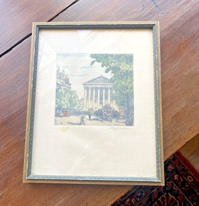 VINTAGE TAVIK FRANTISEK SIMON COLORED ETCHING "RUE ROYALE ET LA MADELEINE" 78