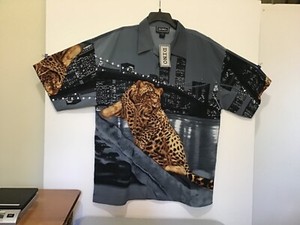 DINO Men's 2XL Polyester Button Up Leopard Print Shirt NWT!! #CB7-1