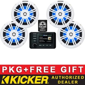 KICKER KMC4 DIGITAL MEDIA RECEIVER MARINE AUDIO PACKAGE+6.5 LED SPEAKERS 1 PAIR