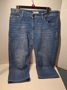 VGS Capri Jeans, Womans 10, 30×18, Blue, Cotton Blend, Embroidered