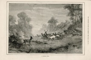 STARTLED HERD OF DEER OLD ANTIQUE 1880 ART PRINT ENGRAVING b10