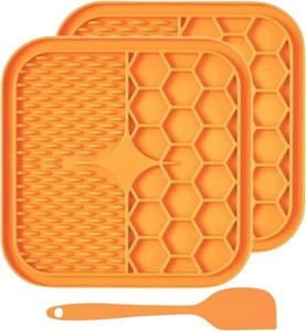 CLEARANCE: Lick Mats for Dogs and Cats - Pack of 2 with Spatula - Orange - 21x21 £4.49Save up to 15% with Multi-buy