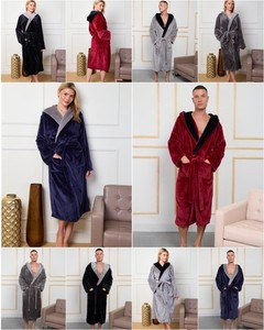 Flannel Sherpa Fleece Hooded Unisex Bathrobes Dressing Gown Warm Soft Cosy Robes