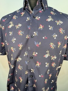 Next Mens Short Sleeved Floral Shirt Size Large Blue Cotton