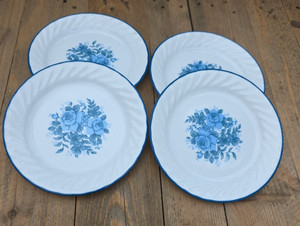 Corelle Corning Blue Plates Salad Dessert Velvet Rose Blue Rim 7.25" SET of 4