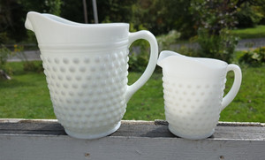 Lot of 2 Vintage Milk Glass Hobnail Pitcher Pitchers White Farmhouse
