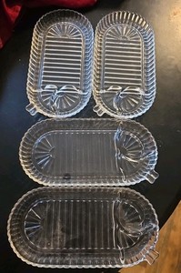 Vintage MCM Glass Appetizer Plates Hollywood Regency Style Divided Oval Set of 4