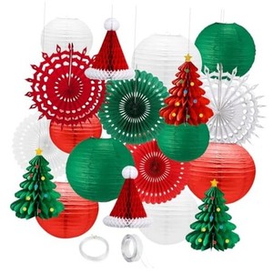 Christmas Paper Lanterns Decoration,19PCS Red Green Lanterns Handmade With