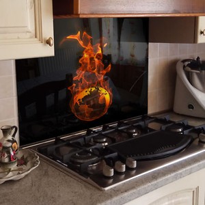 KITCHEN BACKSPLASH Splashback Kitchen Tempered Glass Backsplash Fire Element Red £41.29 to £85.22£87.87