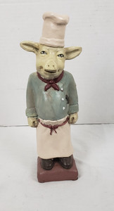 French Chef Kitchen Ceramic Chef Pig Statue Advertising Statue 11" Tall