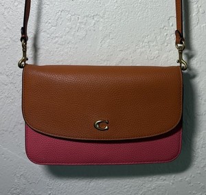 COACH Pebbled Leather Hayden Flap Crossbody Bag Watermelon & Ginger Gold EUC