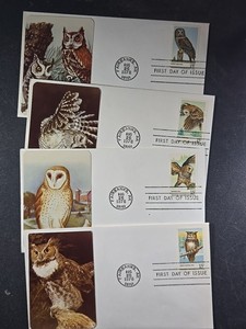 1978 US AMERICAN OWLS FDC Scott# 1760-1763, Photo Cachet - Set of 4- stk#KR13